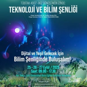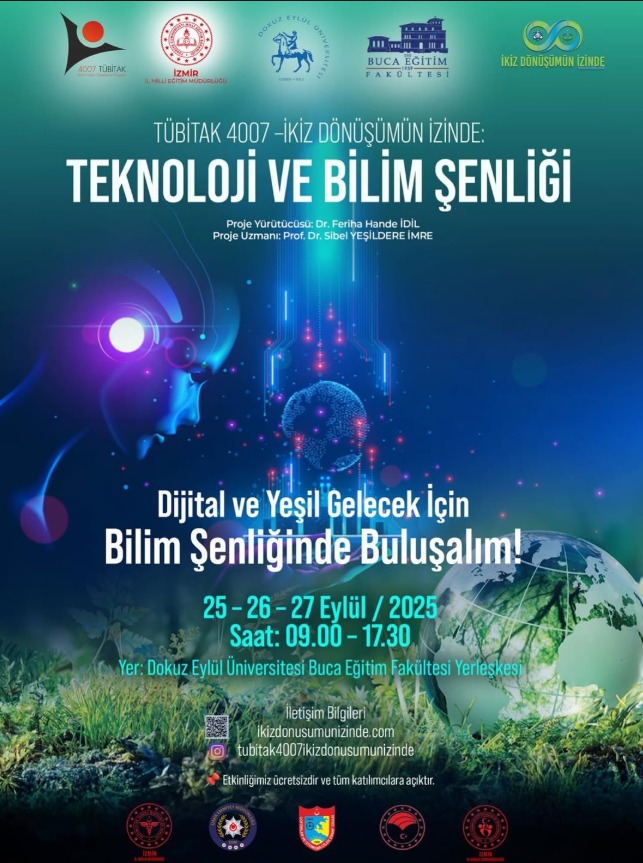 TÜBİTAK 4007 Bilim Şenlikleri Destekleme Programı kapsamında, İzmir İl Millî Eğitim Müdürlüğü ve Dokuz Eylül Üniversitesi iş birliğiyle düzenlenen “İkiz Dönüşümün İzinde: Teknoloji ve Bilim Şenliği”, 25–27 Eylül tarihleri arasında Dokuz Eylül Üniversitesi Buca Eğitim Fakültesi ev sahipliğinde başarıyla gerçekleştirildi.